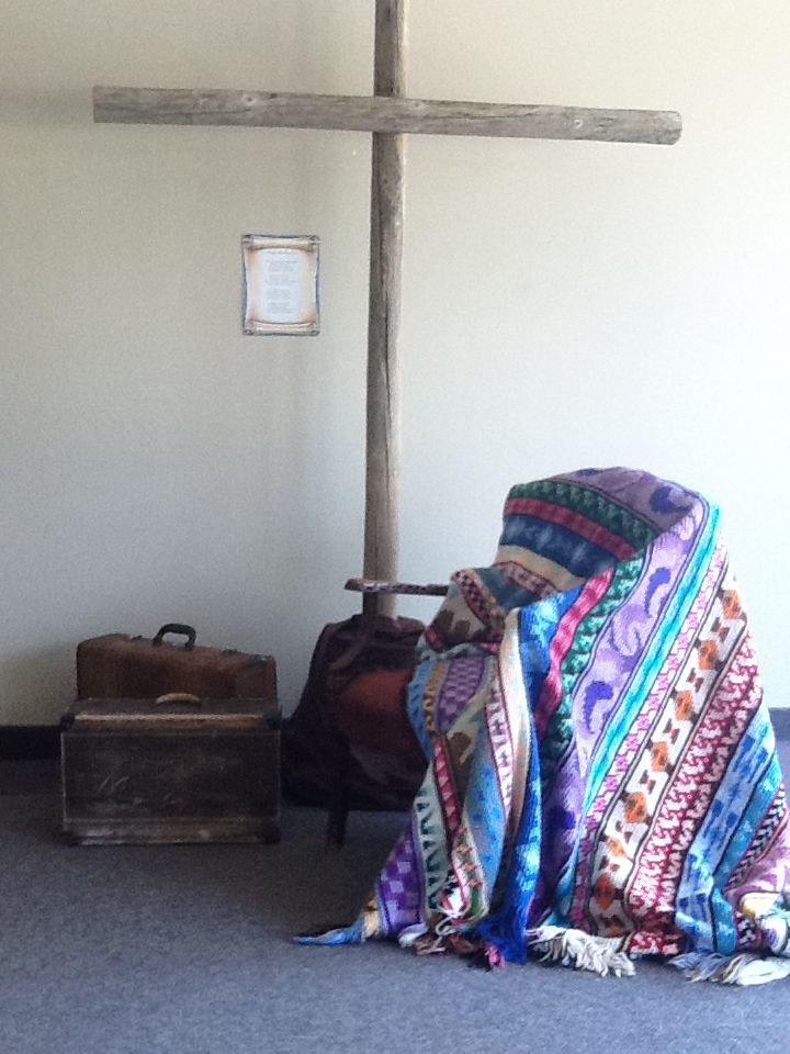 The suitcases at the foot of the cross are so old and battered, as if they have been lugged around for days. The chair is strong, and the blanket is soft and comfortable. How often do we carry our own awkward, ancient burdens for miles before deciding to rest in Christ’s strength? The following two poems by Kathryn McKinnon powerfully demonstrate that we find peace and purpose when we lay our burdens down at the foot of the cross.